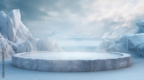Product placement scene mockup from frozen ice pedestal for presentation. Neural network ai generated art