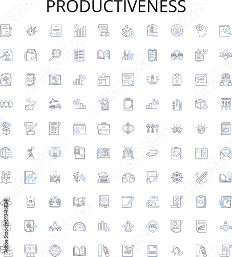 Productiveness outline icons collection. Efficiency, Output, Quality, Prosperity, Process, Excellence, Fruitful vector illustration set. Vigorous, Proficient, Gainful linear signs