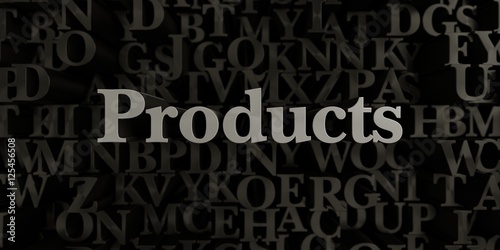 Products - Stock image of 3D rendered metallic typeset headline illustration. Can be used for an online banner ad or a print postcard.