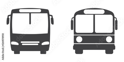 Professional Bus Front View Icons Silhouette Vector Illustration