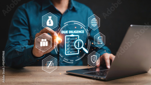 Professional conducting due diligence with digital tools for financial analysis and investment