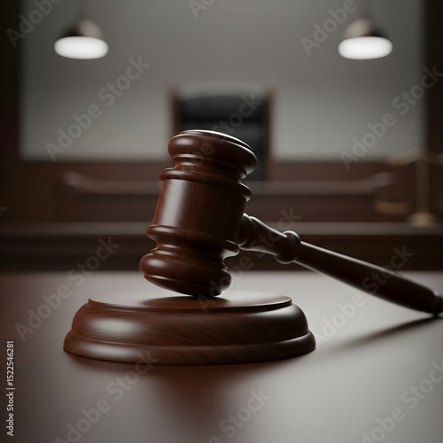 Professional courtroom scene with wooden gavel and blurred background -AI Generated