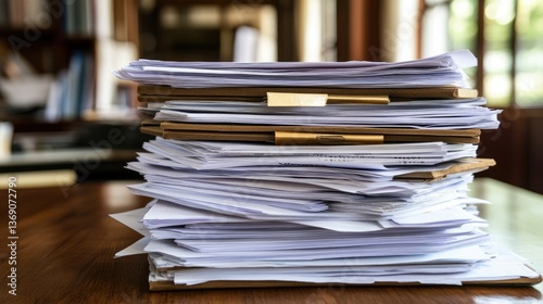 Professional desk with a structured business execution plan, neatly stacked with financial reports.