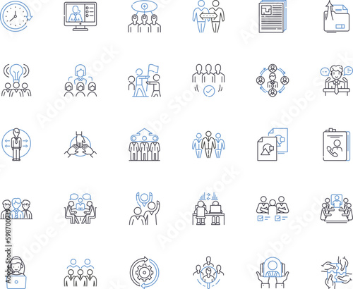 Professional gathering line icons collection. Symposium, Conference, Summit, Workshop, Seminar, Colloquium, Forum vector and linear illustration. Convention,Retreat,Meetup outline signs Generative AI