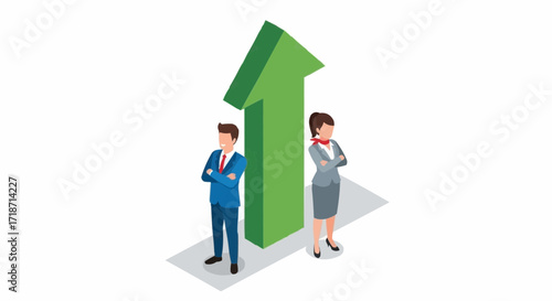 Professional Growth Diverse Business Team with Upward Arrow on Isometric Grid
