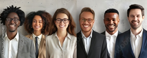 professional headshots showcasing a diverse and smiling corporate team against a neutral background.
