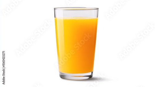 Professional image of a glass of freshly squeezed orange juice with a seamless white background, perfect for branding and beverage advertisements