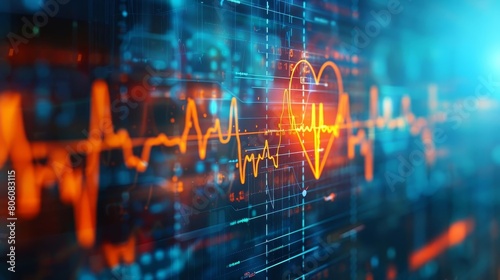 Professional image of a heart beat visual on a medical monitor, emphasizing heart health and diagnostic technology in a clinical setting