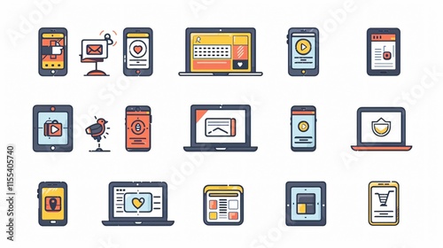 Professional Linear Vector Electronic Device Illustration Set for Graphic Design Projects