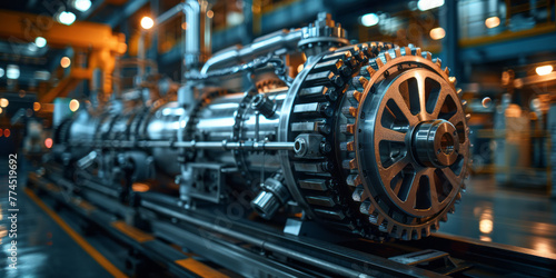 professional photo of large crome industrial gas compressor with a lot of gears inside,generative ai