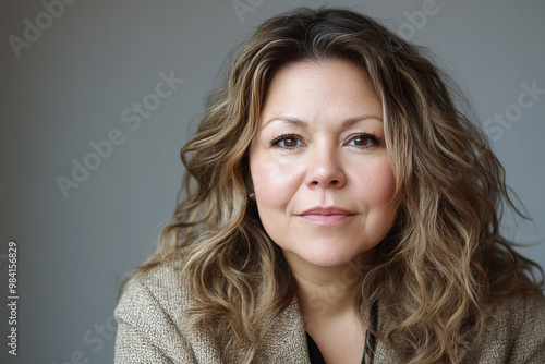Professional Portrait of a Middle-Aged Hispanic Woman with a Warm Smile, Capturing Confidence and Elegance for Corporate and Business Profiles, Perfect for Leadership, Executive Roles