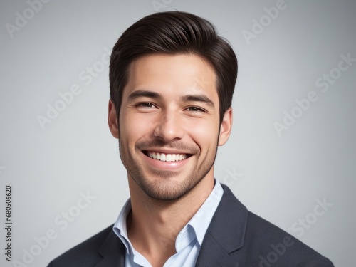 Professional Smiling Man in Corporate Attire with Dark Brown Hair