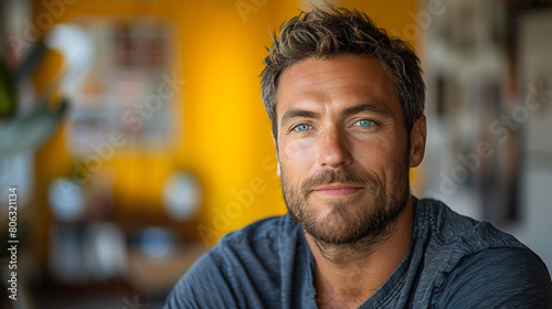 Professional studio photo portrait of a attractive handsome man, beautiful guy with beard, a person, with a pronounced emotional expression, widescreen 16:9