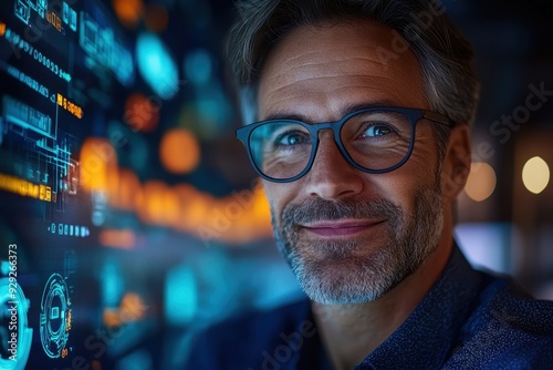 Professional Technology Adviser in Their 40s Providing Expert Guidance on Tech Integration in Futuristic Tech Startup Setting