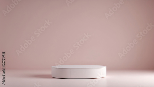 Professional white display stand with soft pink backdrop for commercial marketing and product showcases Realistic 3D Podium for Mockup