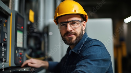 Professional Worker in Safety Gear at Machinery