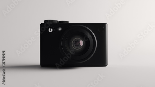 Professional-Grade Compact Digital Camera with Circular Lens and Small Flash, Rendered in Sleek Black and Placed on a White Background for Photography Aesthetics.