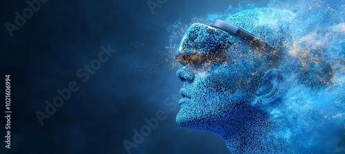 Profile of a Man Wearing VR Headset, Particle Dispersion Effect, Immersive Technology