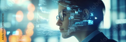 Profile of a person with digital data overlays, symbolizing technology and innovation.