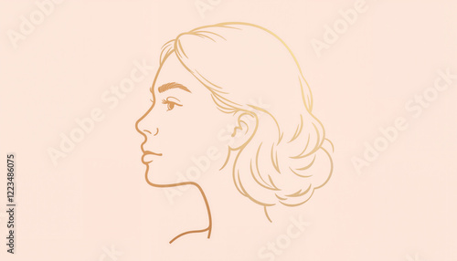 Profile of a young woman with a calm expression in minimalist design on peach background