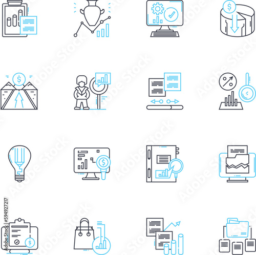 Profit strategy linear icons set. Optimization, Revenue, Growth, Efficiency, Performance, Scalability, Investment line vector and concept signs. Sustainability,Streamlining,Diversification outline