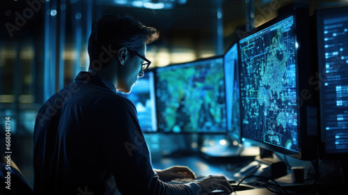 Programmer working in the server room
