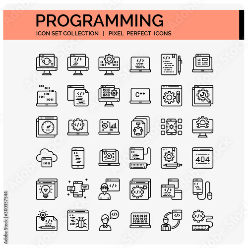 Programming Icons Set. UI Pixel Perfect Well-crafted Vector Thin Line Icons. The illustrations are a vector.