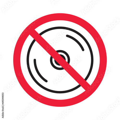 Prohibited CD vector icon. No DVD icon. Forbidden compact disc icon. No disc vector sign. Warning, caution, attention, restriction, danger flat sign design. DVD symbol pictogram
