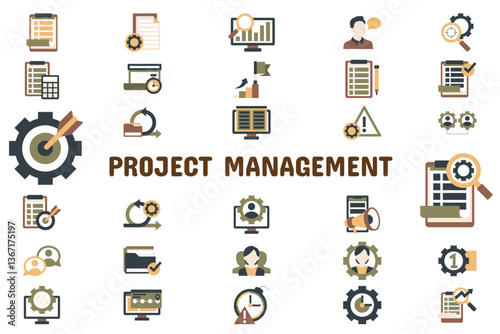Project Management Flat Vector Illustration Icon Sticker Set Design Materials