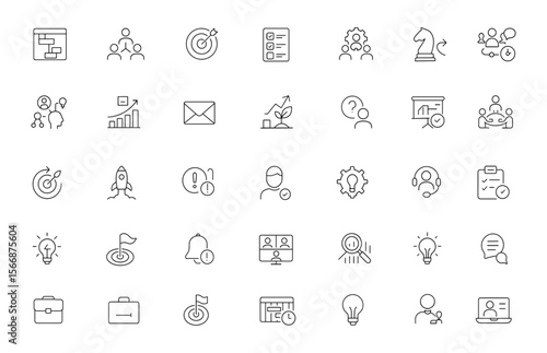 Project Management Icon Set Vector | Teamwork, Strategy, Planning, Collaboration, Task, Goal, Deadline, Communication, Growth, Report, Support, Agile, Productivity Icons