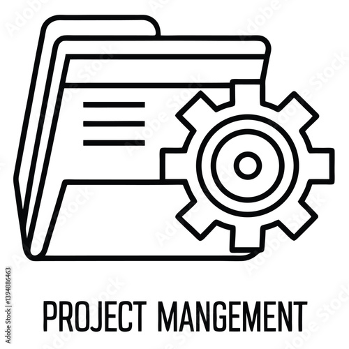 Project Management Outline Icon With Folder And Gear Symbol Representing Task Execution And Workflow Optimization In Business And Technology