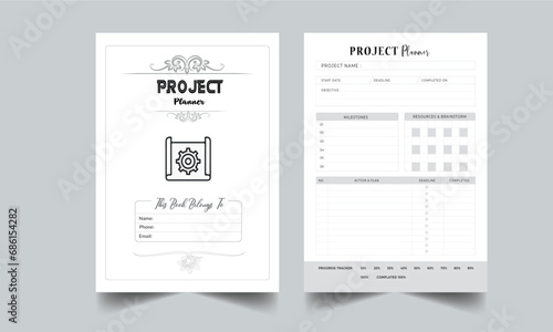 Project planner template. Set of minimalist Project Planners. Printable project planner template design with cover page layout template