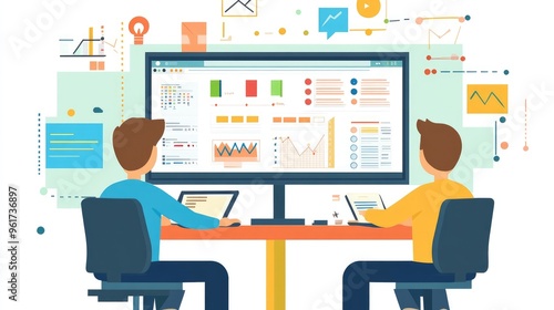 Project planning with agile methodology, flat design, front view, professional theme, cartoon drawing, Split-complementary color scheme