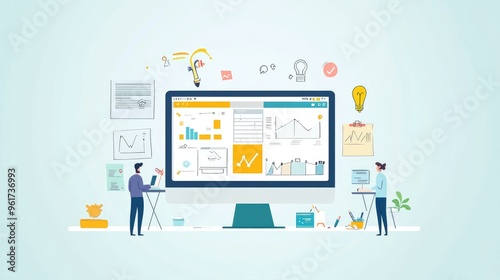 Project planning with agile methodology, flat design, front view, professional theme, cartoon drawing, Split-complementary color scheme
