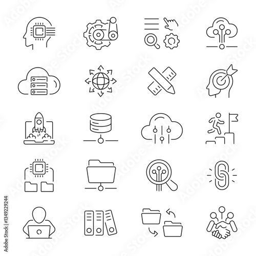 Project vector icons. Project management icon collection. Project, planning, scheduling, management related thin line icon collection. Editable stroke
