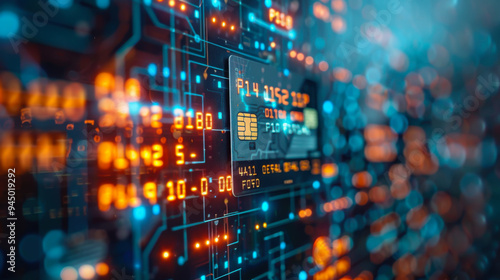 Projection of a credit card, on background of a billboard, money and payment