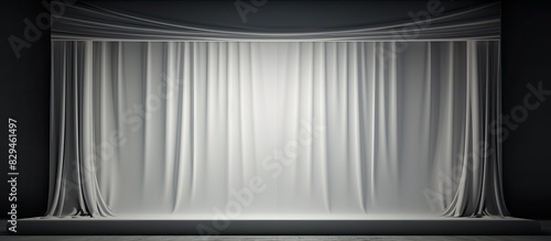 Projection screen for projectors On the background of soft grey curtains. copy space available