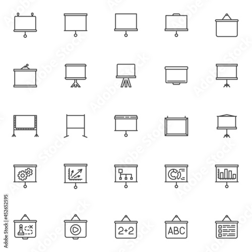 Projector screen line icons set