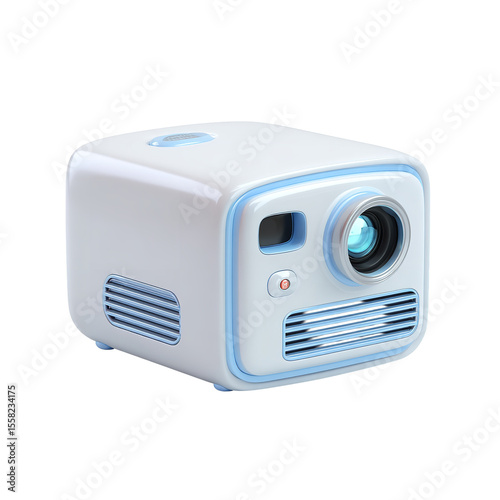 Projector White Blue Retro Design Cinematic Home Theater Portable on transparent background