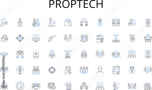 Proptech line icons collection. Innovation, Growth, Strategy, Planning, Investment, Capital, Market vector and linear illustration. Analysis,Sales,Development outline signs set
