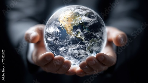 Protecting Our Planet: Hands Holding Earth, Symbolizing Global Conservation and Environmental Responsibility for Future Generations