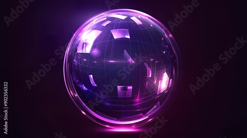 Protection sphere shield with hexagon pattern on blue background. Glass Dome shield. Glowing bubble shield in the form of a force energy field. Protection and safety concept. Vector illustration.