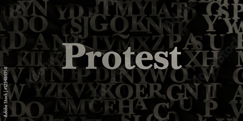 Protest - Stock image of 3D rendered metallic typeset headline illustration. Can be used for an online banner ad or a print postcard.