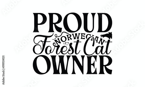 Proud Norwegian Forest Cat Owner - Norwegian Forest Cat T-Shirt Design, Handmade Calligraphy Vector Illustration, Bags, Posters, Cards, Isolated On White Background.