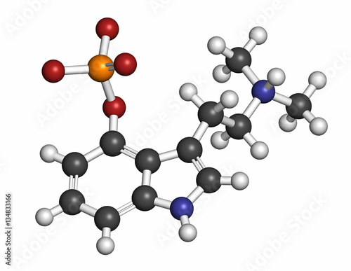 Psilocybin psychedelic mushroom molecule, 3D rendering.