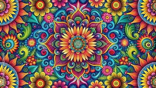 Psychedelic floral pattern with vibrant colors and intricate designs, Psychedelic, Flora, Patterns, Vibrant, Colors