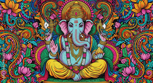 Psychedelic Ganesha in a Vibrant and Colorful Mandala Pattern