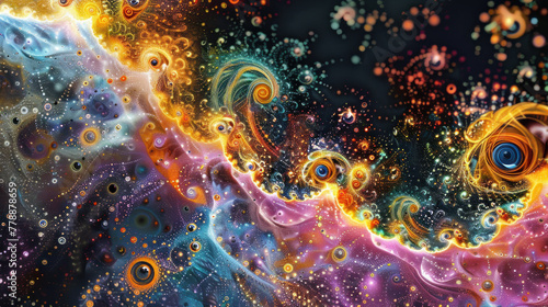 Psychedelic kaleidoscopic fractal glowing with neon lights