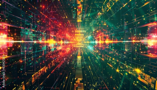Psychedelic technoscape synthesized from AI-generated computations, tech for everything