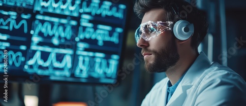 Psychologist examining EEG readings in a clinical setting, neurological feedback in psychological research